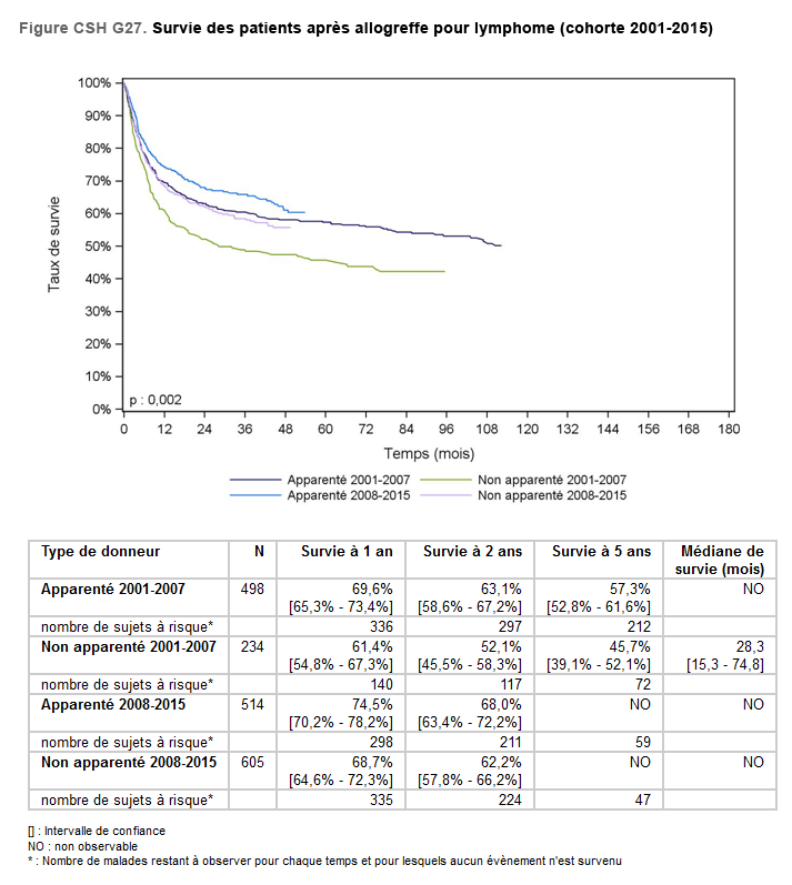 Figure CSH G27. Survie des patients après allogreffe pour lymphome (cohorte 2001-2015)